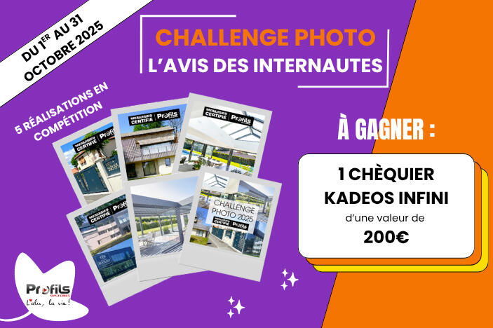 Du 1er au 31 octobre 2025, Profils Systèmes vous invite à voter pour votre réalisation aluminium préférée dans le cadre de son grand jeu-concours « Challenge Photo Profils Systèmes, l’avis des internautes ». À la clé : un chéquier KADEOS INFINI d’une valeur de 200€, valable dans plus de 500 enseignes.